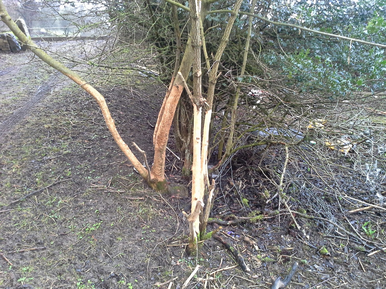 The fencing contractors employed to install the wire stock fence, on the roadside of the orchard site, cut back some of the hedge bushes. This was fine by us. They needed relatively straight lines of sight for the fencing process which involves tensioning the wire.