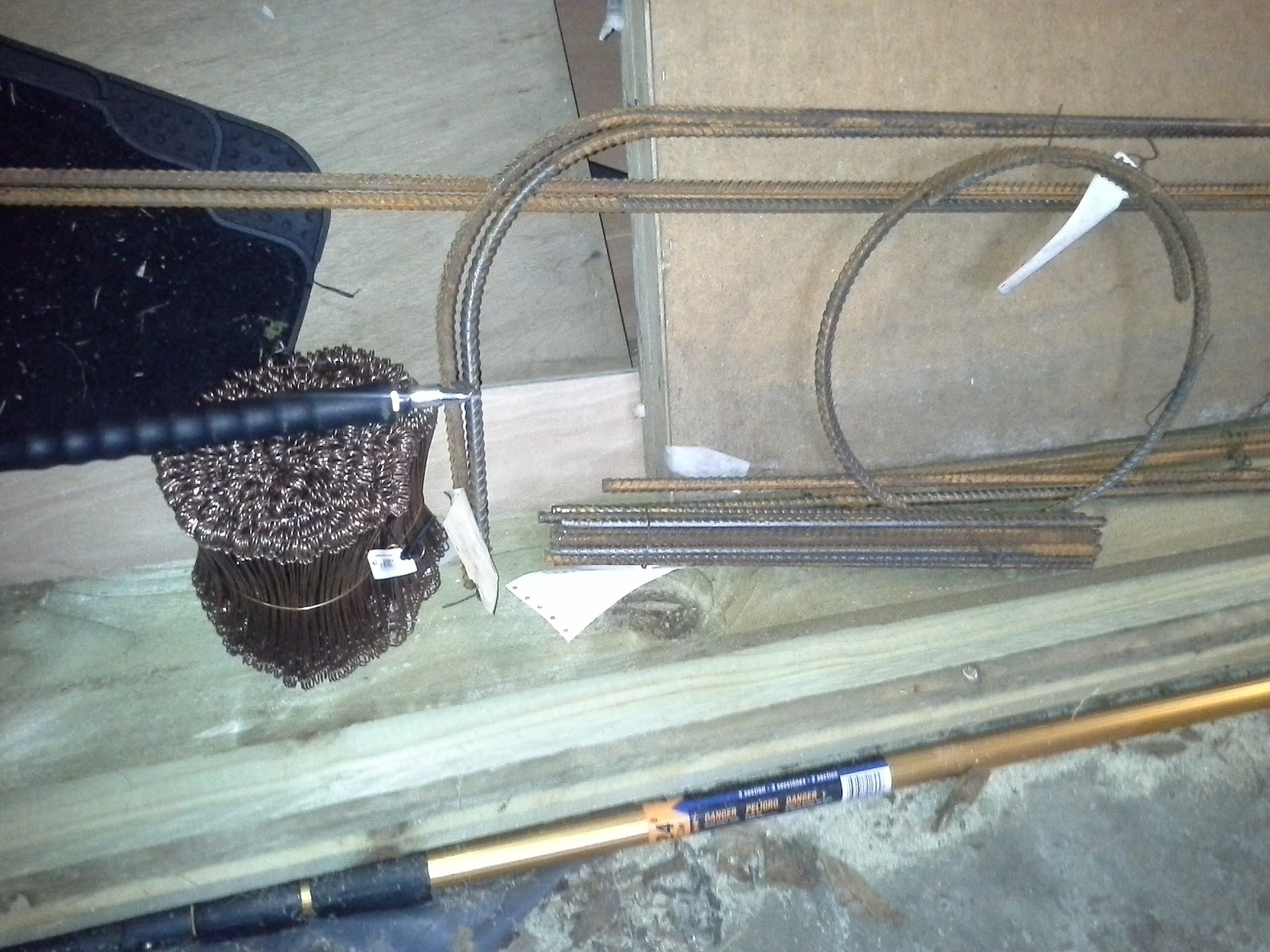 | The rebar awaiting installation, and wire tie equipment. |