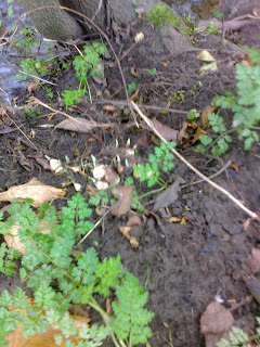 We also noticed some exposed flower bulbs, snowdrop, on the river bank. There's probably been some soil erosion during recent years. We may need to consider some method of natural reinforcing to prevent the erosion extending. If we leave this the erosion will eat into the public footpath and endanger the farm access to adjoining fields.